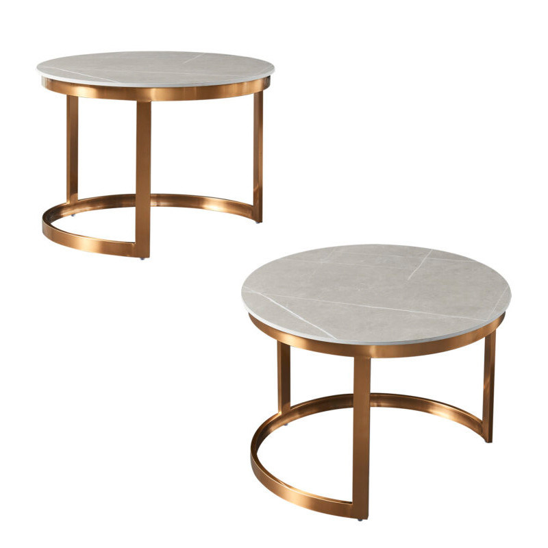Curve roestvrij staal basis keramische marmeren koffietafel met uitstralende natuurlijke schoonheid en verfijning