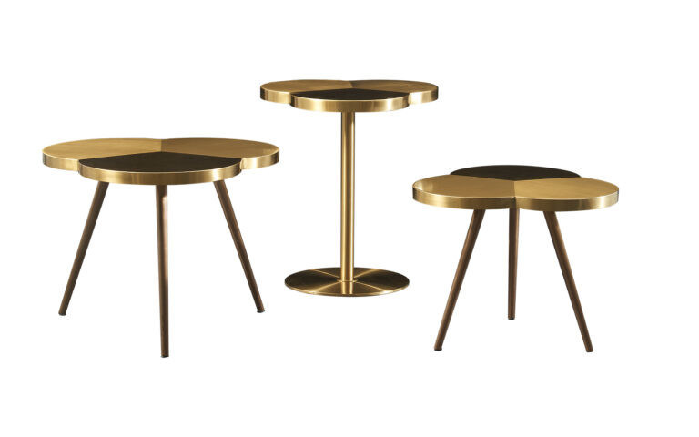 Vorm en vorm: De zijtafel heeft een boeiende klavervorm als kernontwerp.de drie elkaar overlappende bladeren van de klaver creëren een eigenzinnige en visueel intrigerende silhouetDe zorgvuldig gebalanceerde verhoudingen en sierlijke bochten van de klavervorm dragen bij aan het algemene charme en elegantie van de tafel.