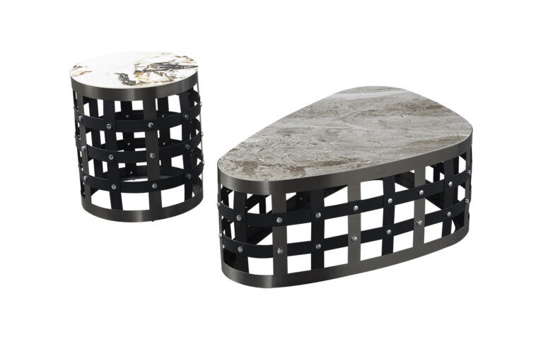 Keramische marmeren rasterlijn salontafelset met eigentijdse stijl en luxe |