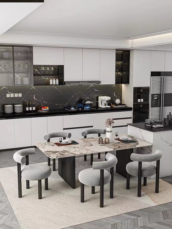 Design veelzijdigheid: Keramische marmeren oppervlakken bieden een breed scala aan ontwerpopties, zodat u een tafel kunt vinden die past bij uw favoriete stijl.een minimalistisch ontwerp of een meer traditioneleEr zijn keramische marmeren eettafels beschikbaar voor verschillende ontwerpeesthetieken.je kunt een tafel vinden die je algemene interieurontwerp aanvult.
