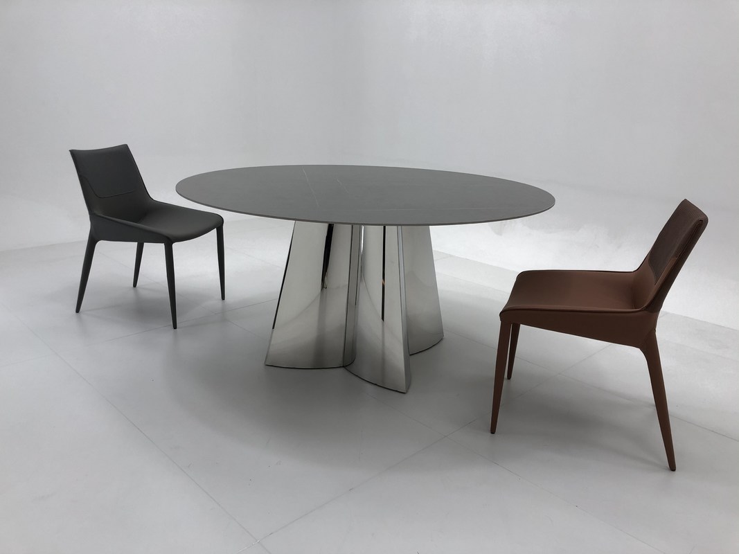 Marmeren eettafel Keramische tafeltop zilveren ruw staal basis Huishoudelijk meubilair |